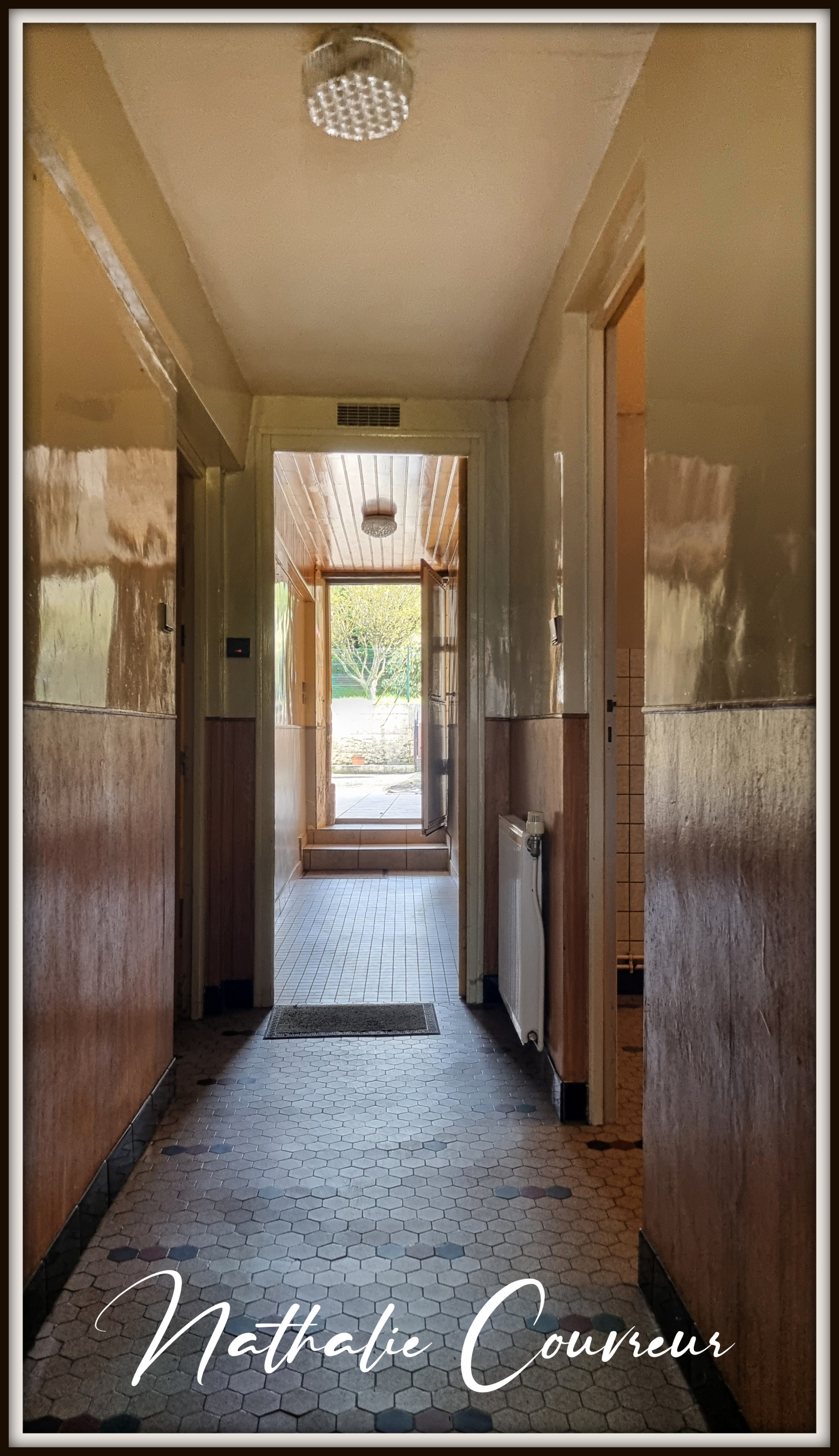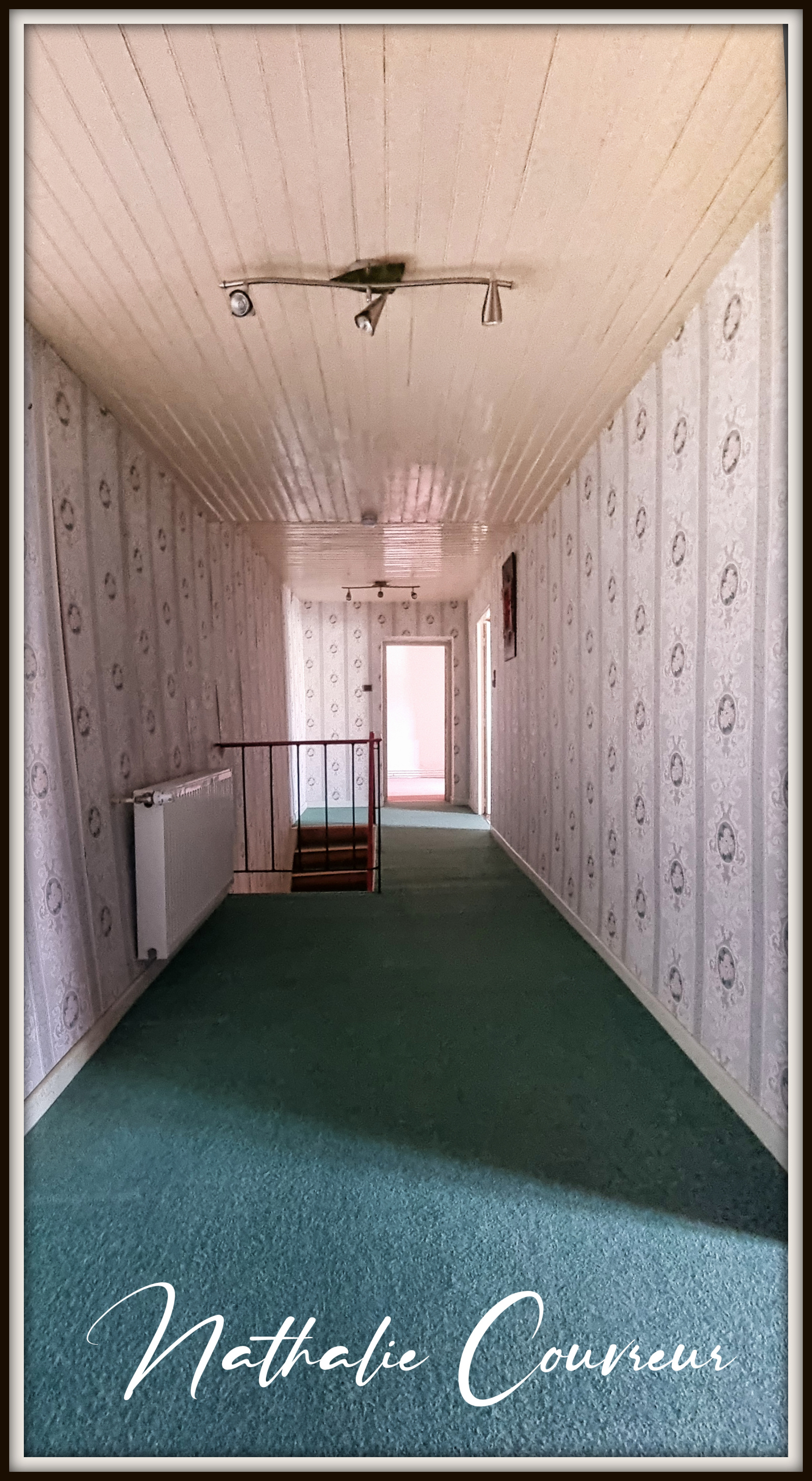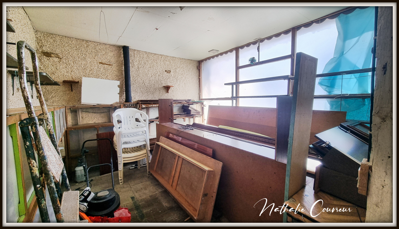 Cette maison dispose actuellement d'une cuisine avec cheminée, une très grande salle-à-manger / salon, 4 grandes chambres, un dressing, une salle d'eau, un WC, un atelier, une cave, un double garage dans une grange, une serre à semis et un immense grenier aménageable. On peut y garer facilement 5 voitures sur des emplacements privatifs. Un parking public se situe à proximité immédiate.