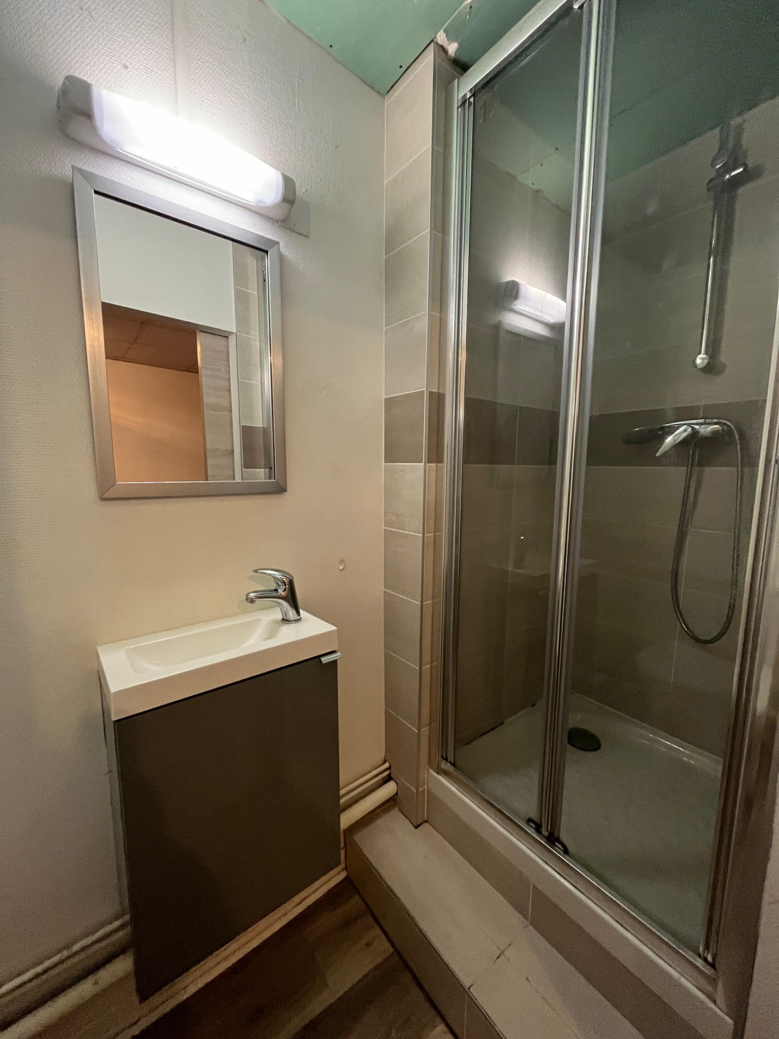 Il se compose d’une pièce de vie lumineuse avec kitchenette équipée, ainsi qu’une salle d’eau fonctionnelle.